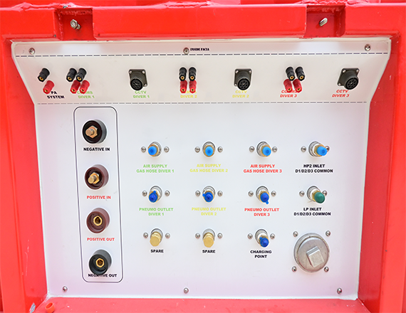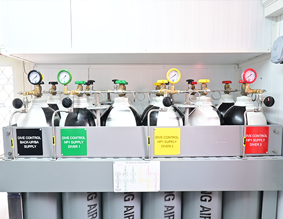 Silindrlər bankı – 12 ədəd silindr, paslanmayan polad borular vasitəsilə dalğıc panelinə qoşulur